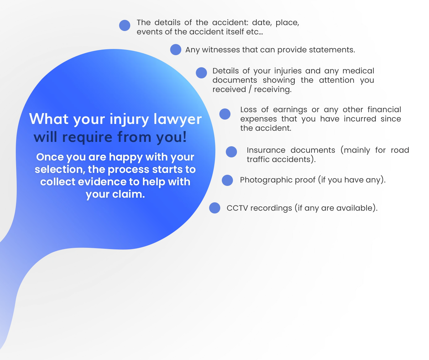 Your first step is to make sure you contact an experienced personal injury lawyer who will give the proper advice you'll need to make a compensation claim.